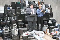 Wandsworth's executive member for environment and leisure Cllr Malcolm Grimston (pictured above on the left) said: "We were very pleased to have co-ordinated this recycling initiative because it sends out a very powerful message to people who make their neighbours' lives a misery through noise. If they don't mend their ways and turn down the volume, their stereos will be taken away from them and end up in the next hi-fi mountain that gets broken up and recycled.