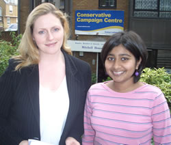Prospective Conservative Parliamentary Candidate for Brentford and Isleworth, Mary Macleod has taken sixteen year old Saba Ahmed under her wing and has been teaching her a thing or two about local politics. Mary, who says she is keen to motivate young people to become involved in politics, said “I was very encouraged to see that Saba was so eager to learn more about politics, both on a local and national level. "I believe we achieve a strong sense of community by sharing responsibility and supporting each other, no matter how old you are. This is why I think it is important for everyone to be involved in politics, regardless of their age.” Saba Ahmed, a student at the Green School for Girls, said, “I wanted to do something different during the summer holidays, so I simply emailed Mary to ask if I could shadow her for a month. It has been very interesting to see the work she does for the local community.” Now nearing the end of her work experience, Saba reflects on her time at the Conservative Campaign Headquarters. “I think I have gained a better insight as to how a political campaign is run. After having worked with Mary, I am definitely going to take a more active interest in politics in the future.” August 29, 2007