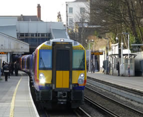 The first ten-car train entered service on the line from London Waterloo to Windsor & Eton Riverside through Putney on Monday, 10th March, initially with two five-car units running in fixed formation. The full journey takes about an hour, and with about a quarter of an hour to turn round at either end, there are five trains normally in service on the half-hourly schedule. At present, the other rotas are provided by the existing eight-car trains.