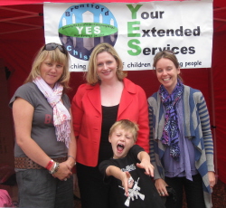 Mary Macleod MP met a team from Chiswick and Brentford Your Extended Services (YES), who were on hand to give information on Hounslow Council’s Extended Services scheme (past events have included Yoga for exam-age children, paediatric first aid courses and a Healthy Cookery Club). Mary met Liz Gers (Parent Support Adviser) (left) and Claire Collison (Co-ordinator for Brentford and Chiswick) (right) of Brentford and Chiswick YES, with Liz’s son Tom.