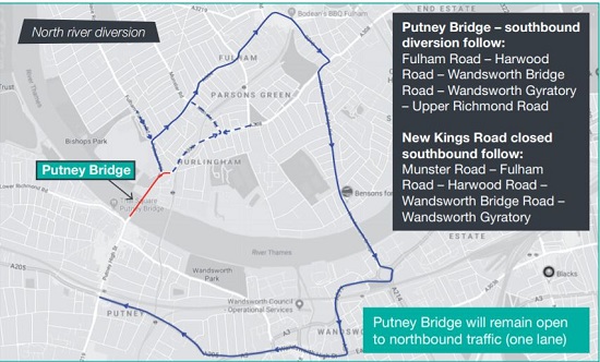 Putney Bridge is to close almost completely for 24 hours, from from 4am on Sunday 2 February to 4am on Monday 3 February, to allow for essential work by Tideway on London's super sewer. Tideway says the work is due to a key part of the giant project being completed at Putney Bridge. A small tunnel that will connect a sewage overflow point under Putney Bridge to the new sewer – which is currently under construction to stop sewage overflowing into the river - was excavated over the past two months using a small digger called a pipe-jacking machine. Now work is complete, the bridge will be closed while a large crane is used from the south side of the bridge to remove the machine from the site. The southbound side of the bridge will be closed to general traffic, with alternative routes in place. Lower Richmond Road between Putney Bridge and the Embankment Road will be closed to eastbound traffic with local diversions in place. The northbound side of the bridge will be open to traffic but restricted to one lane only so delays are expected. Bus services in both directions will continue to operate with local diversions and some delays expected. Pedestrians and cyclists will be able to use the bridge in both directions. The closure will be lifted at 4am on Monday 3 February with the bridge re-opened to all traffic. Putney project manager, David Miles, said: "This is a vital piece of our work at Putney to connect the old sewer system to the new tunnel, and marks a step towards a cleaner, healthier River Thames. We want to thank residents and road users for their patience as we complete this essential work."